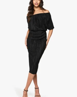 Secure this season’s must-have silhouette with this bardot dress. With a wide open neckline that exposes the shoulders and accentuates your décolletage, an off-the-shoulder dress is the classic staple you need in your life. Whether you choose soft shades for a classic look or statement prints for maximum impact, this is the dress your summer wardrobe won’t be complete without. Try bardot midi dresses for low-key glam or wear an off the shoulder maxi dress for all your summer plans – it’s a vibe.Style: Bodycon DressFabric: PlisseLength: MidiSleeve Length: Short Sleeve