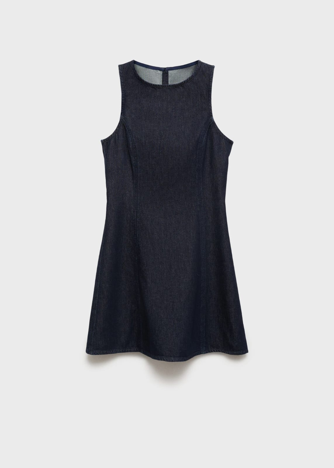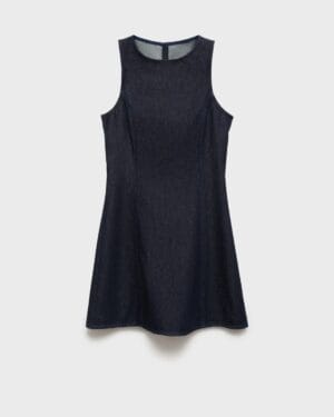 A clean and minimal denim mini dress crafted in a dark wash for a modern, elevated look. Designed with a sleeveless cut and soft A-line silhouette that flatters the body without losing structure. The seamed tailoring adds shape, while the concealed back zipper ensures a smooth finish.