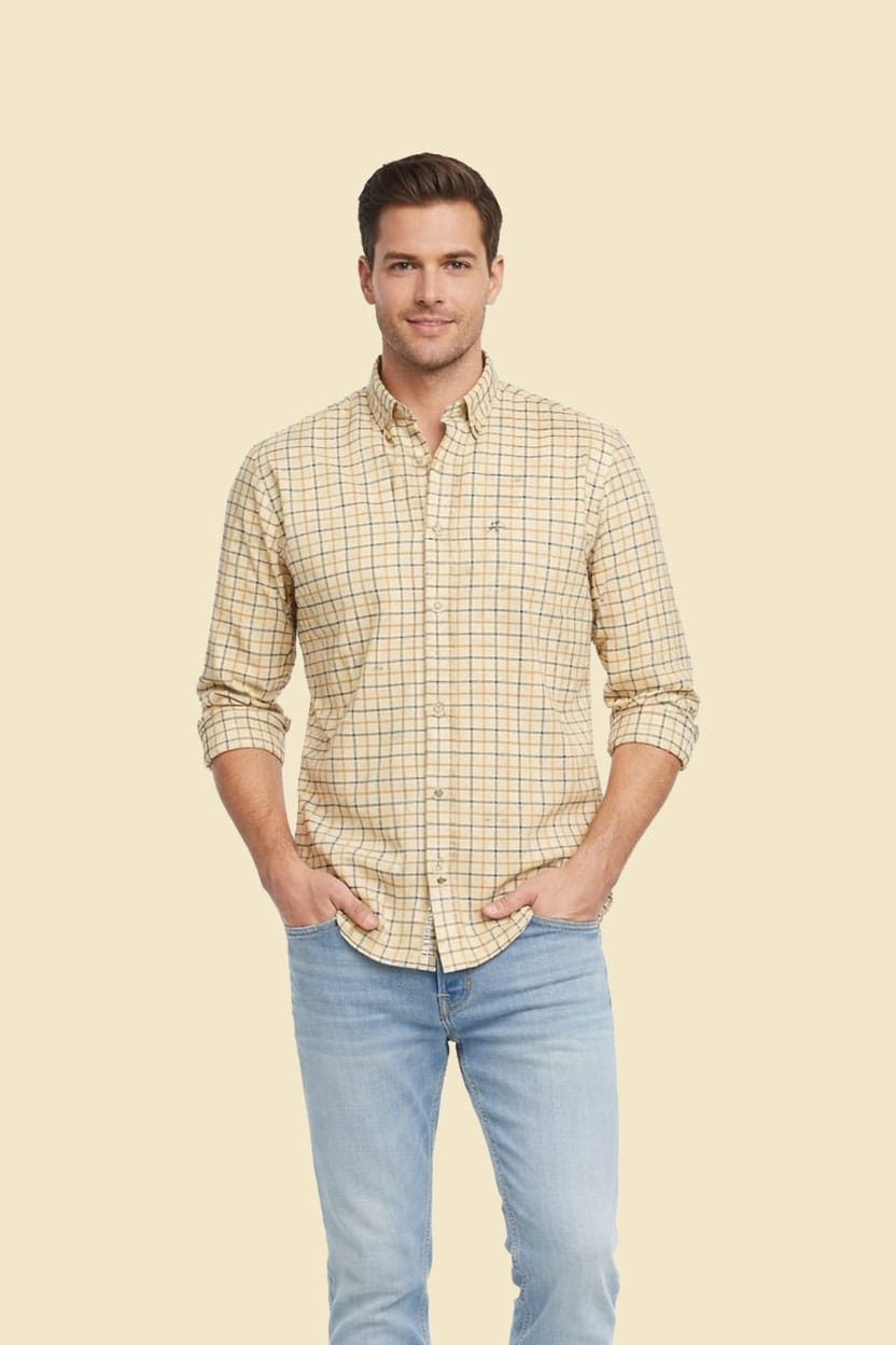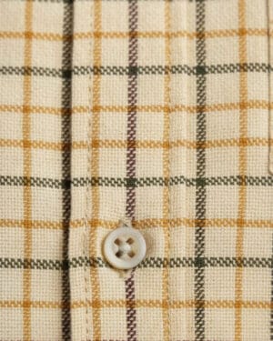 The beige check pattern gives the shirt a timeless style that pairs easily with jeans or chinos.