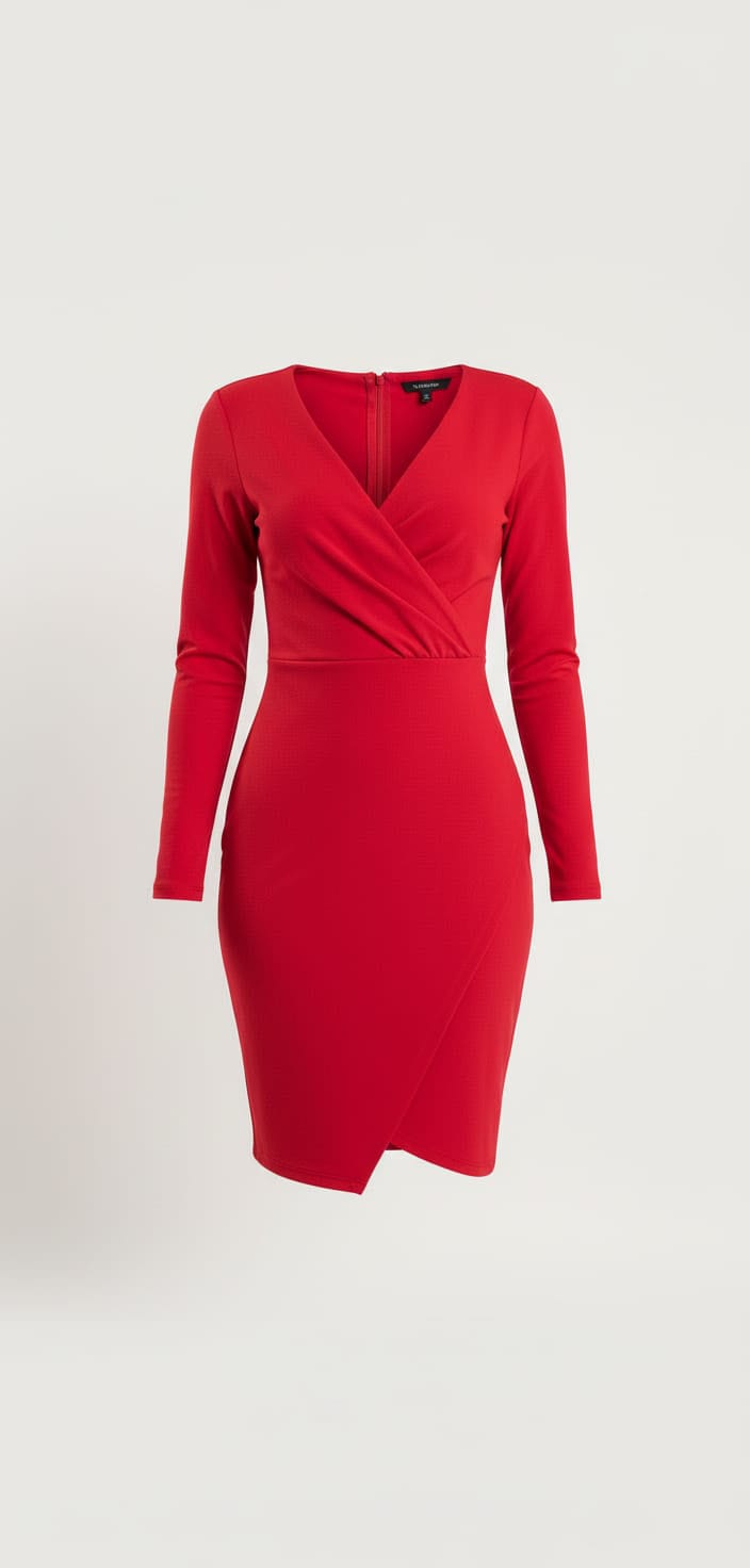 This Miss Selfridge red bodycon piece features a figure-hugging silhouette, a soft stretch fabric, and a wrapped V-neckline that adds both elegance and confidence.