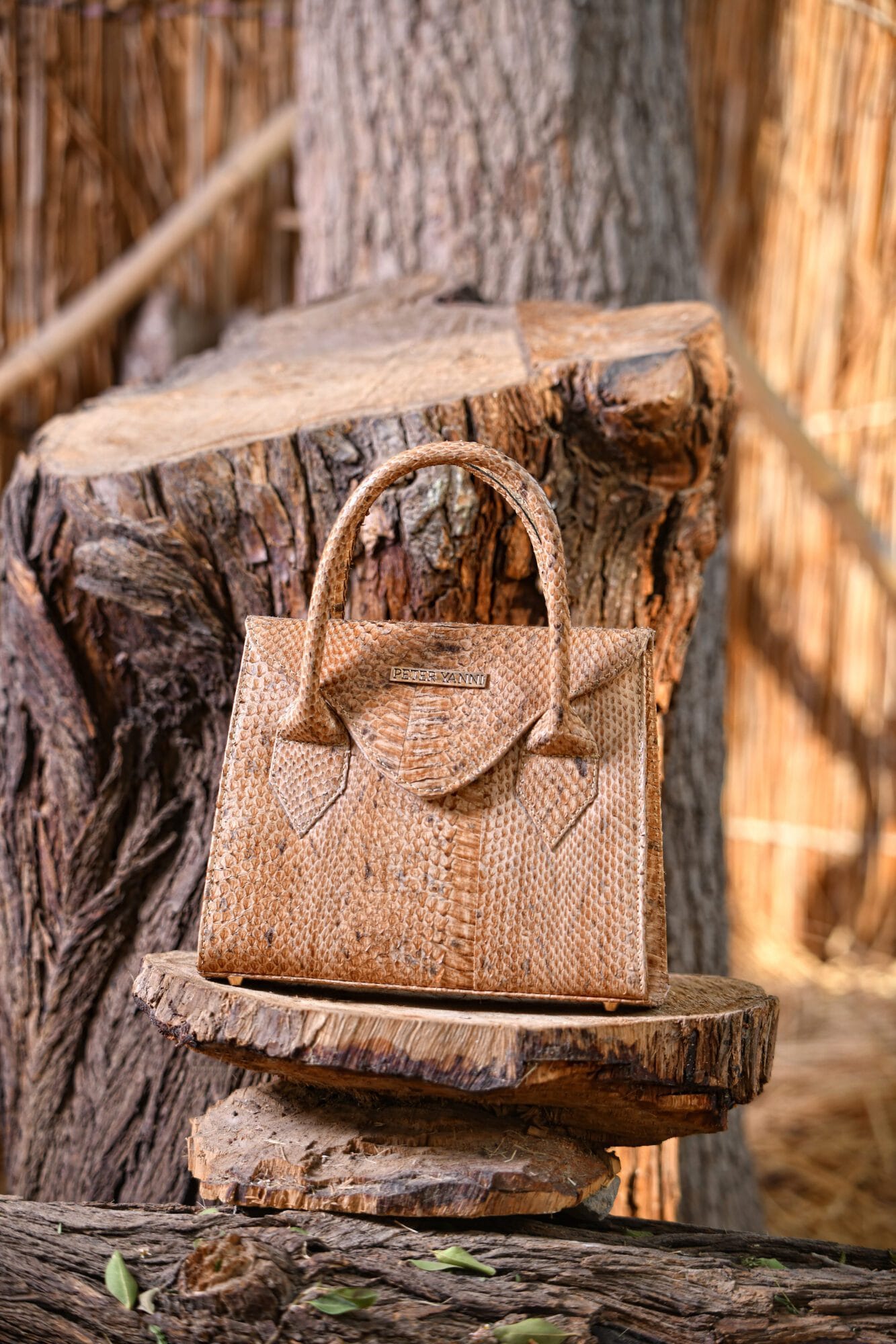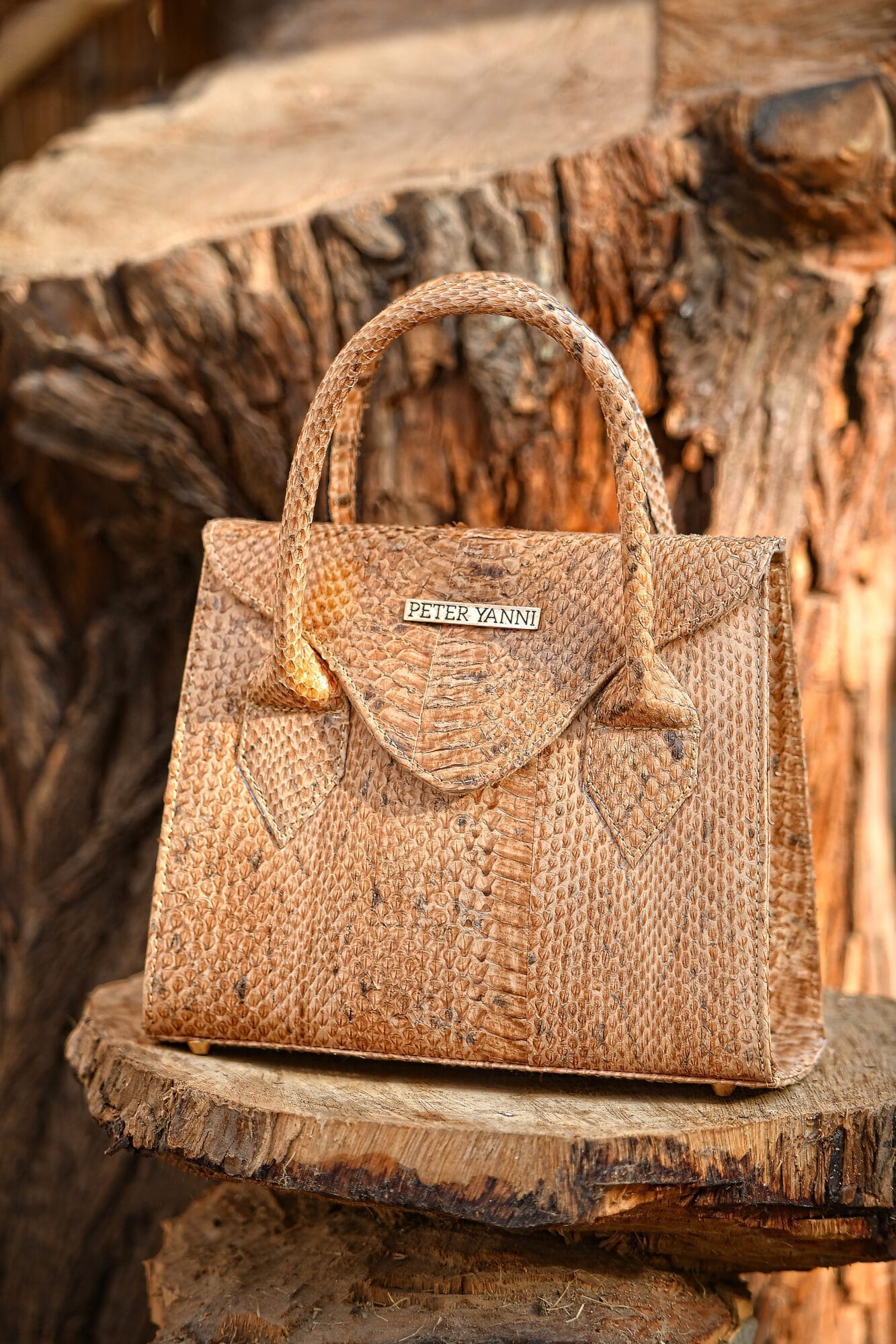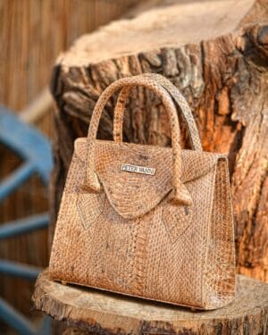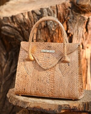 The Peteryanni Beige Trapeze Snakeskin Bag is crafted from genuine snakeskin leather, offering a refined and luxurious texture with a bold, structured silhouette.