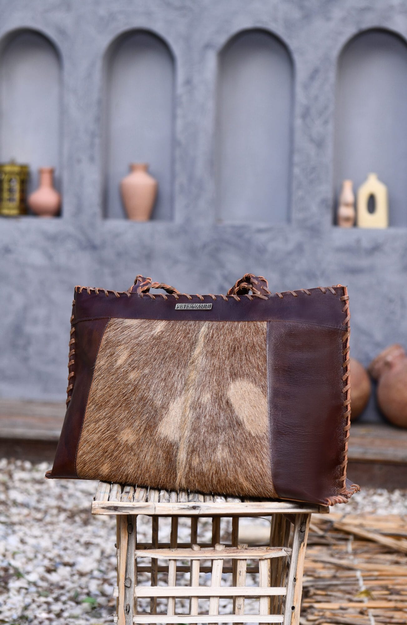 The Peteryanni Brown Ponyhair Shoulder Bag is a statement piece crafted from genuine leather and natural ponyhair, designed for women who appreciate bold textures and timeless craftsmanship.