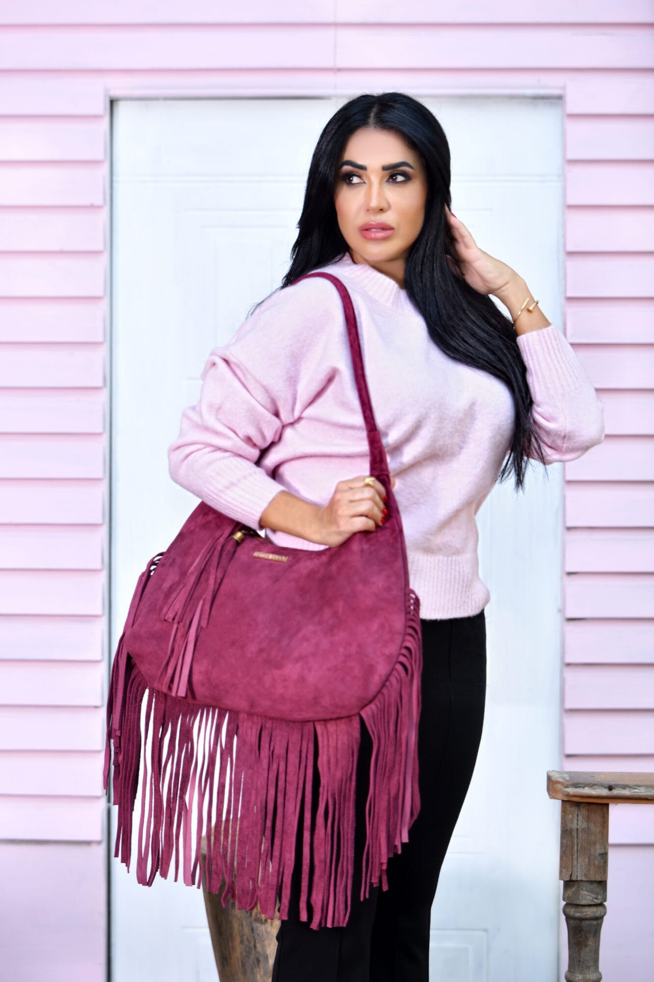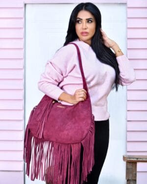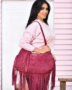 Featuring a rich burgundy tone and long suede fringe detailing, this shoulder bag delivers movement, texture, and personality. The soft suede construction offers a comfortable carry, while the spacious interior makes it perfect for daily use and casual outings.